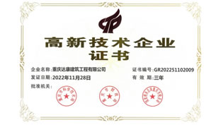喜訊,重慶達康建筑工程有限公司順利通過重慶市科學技術局、重慶市財政局、國家稅務總局重慶市稅務局等部門的聯(lián)合評審驗收,被正式認定為“高新技術企業(yè)”,榮獲《高新技術企業(yè)證書》。